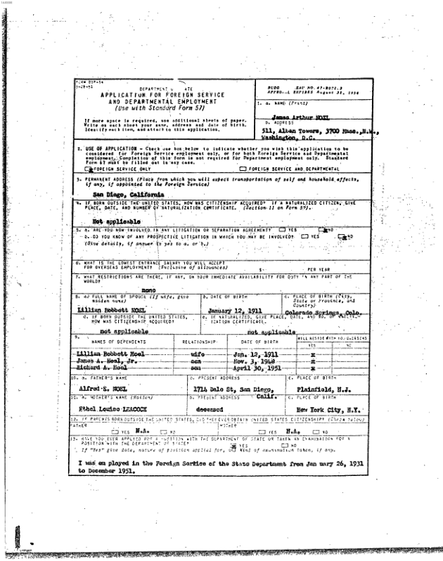 APPLICATION FOR FOREIGN SERVICE AND DEPARTMENTAL EMPLOYMENT