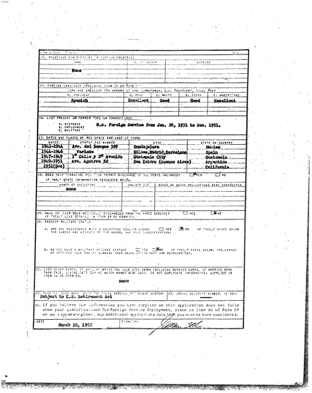 LIST PRESENT OR FORMER OFFICIAL CONNECTIONS: U.S. Foreign Service from Jan. 26, 1931 to Dec. 1951.
