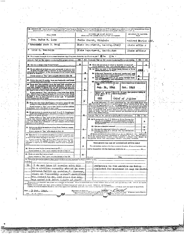 FULL NAME: Gen. Rufus H. Lane, Falls Church, Virginia, retired Marine officer; Assistant Jack D. Neal, State Department, Washington (FAC), State officer; Eric E. Tomlinson, State Department, Washington, State officer.