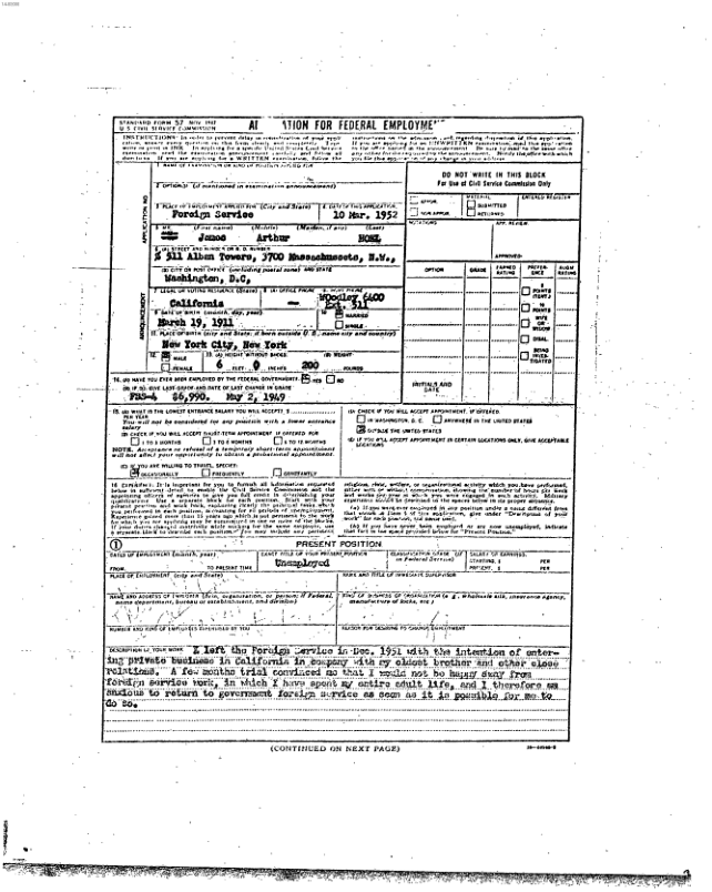 APPLICATION FOR FEDERAL EMPLOYMENT